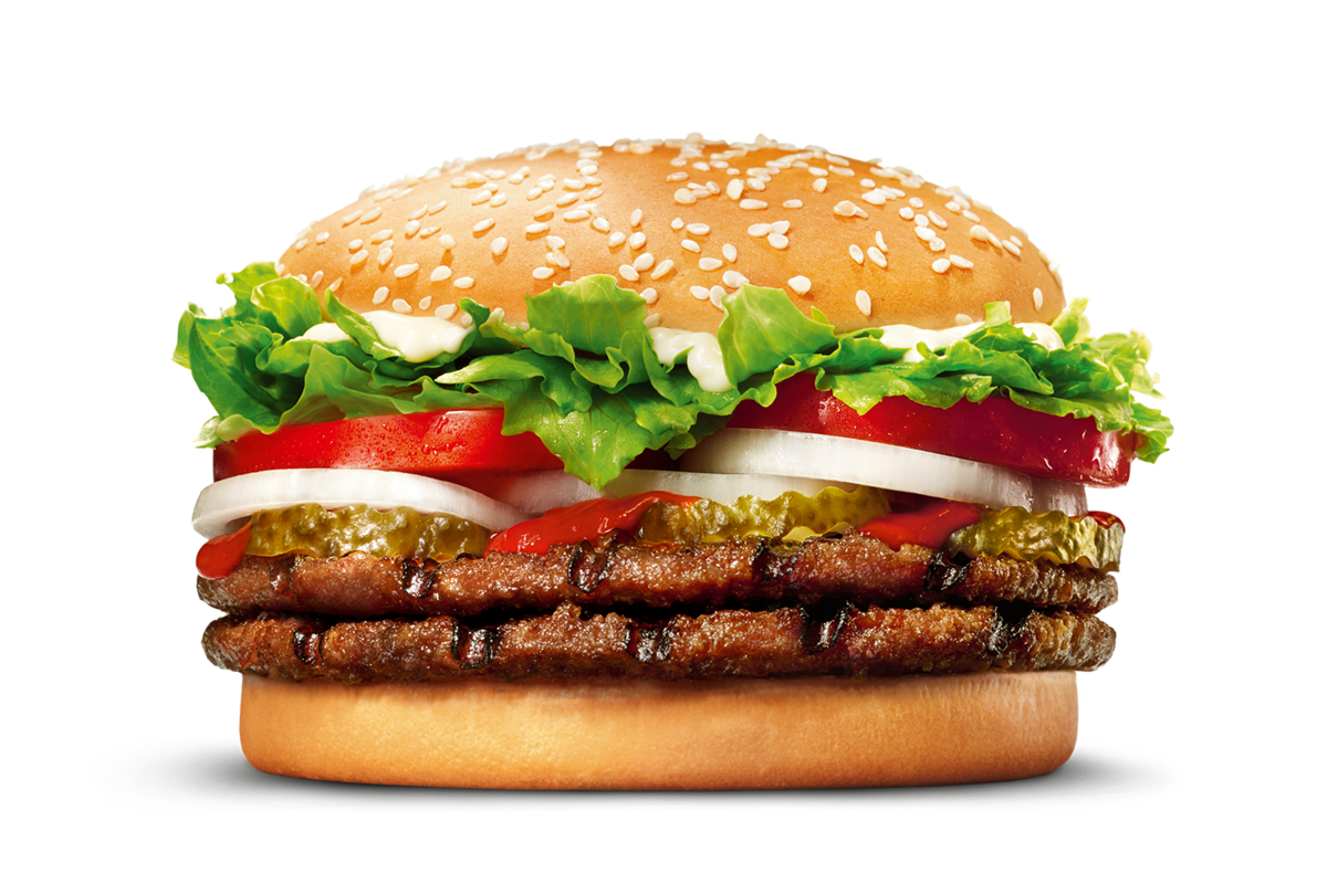 En dubbelburgare med 100% grillat nötkött. Givetvis med fräscha grönsaker precis som i Whopper.