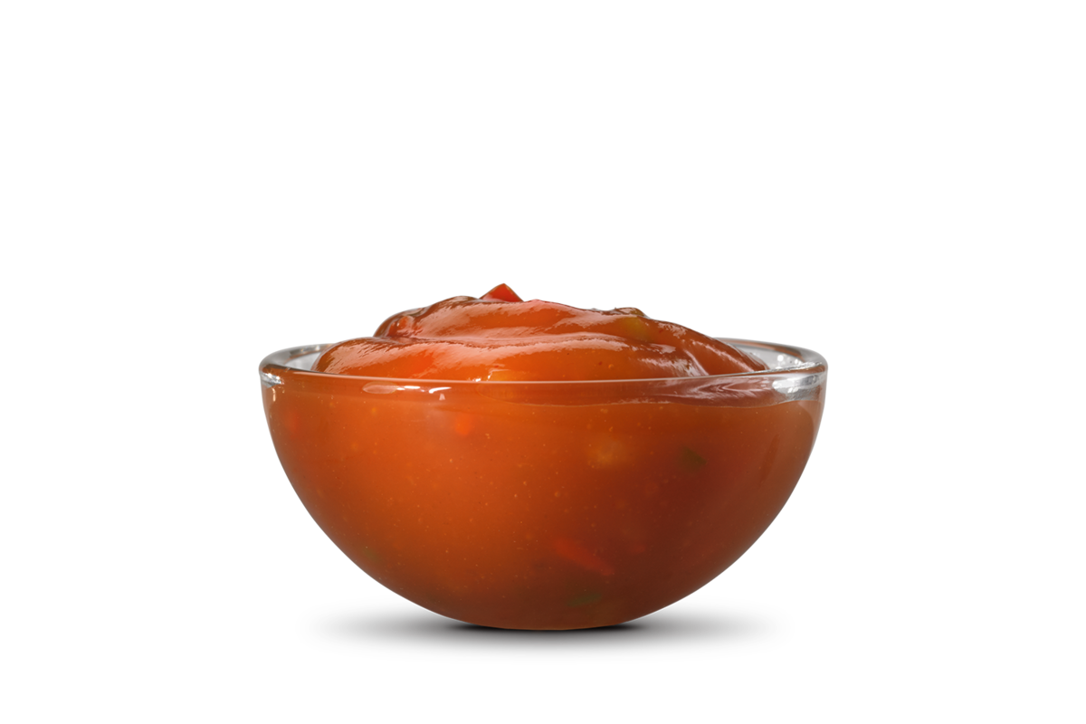 Glukosfruktossirap, vatten, brännvinsvinäger, aprikospuré, modifierad stärkelse, salt, rapsolja, aprikosjuicekoncentrat, ananasjuicekoncentrat, kryddor, sojasås (innehåller SOJA och VETE), surhetsreglerande medel E270, förtjockningsmedel E415, karamellsockersirap.